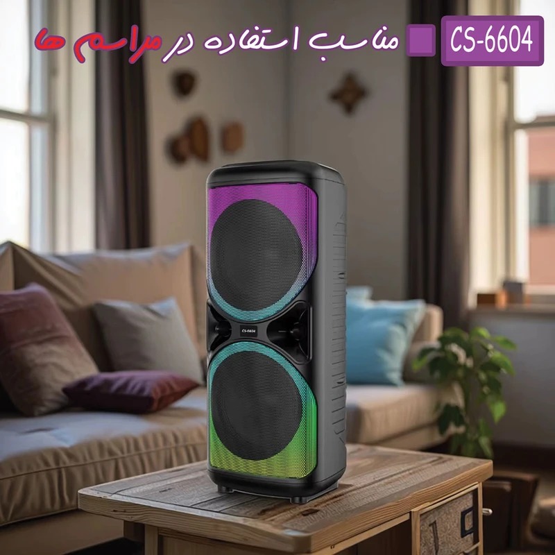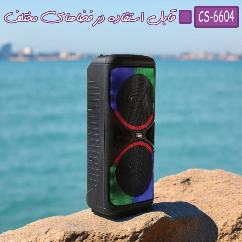 اسپیکر بلوتوثی مدل CS-6604 با طراحی زیبا و عملکرد مطلوب، گزینه‌ای مناسب برای علاقه‌مندان به موسیقی در موقعیت‌های مختلف به شمار می‌رود. این محصول با بهره‌گیری از فناوری روز، کیفیت صدای قابل قبولی را ارائه می‌نماید.