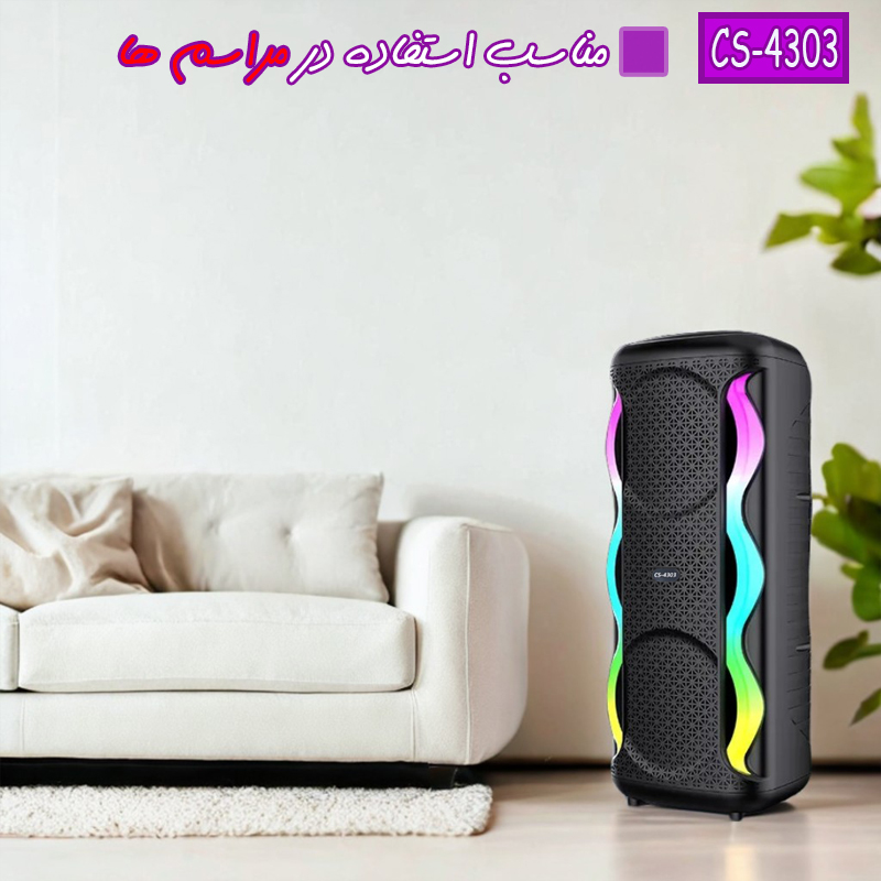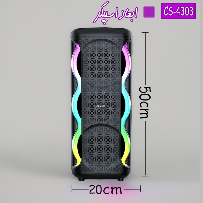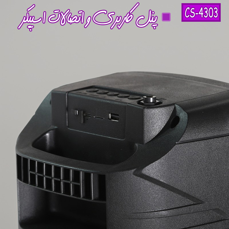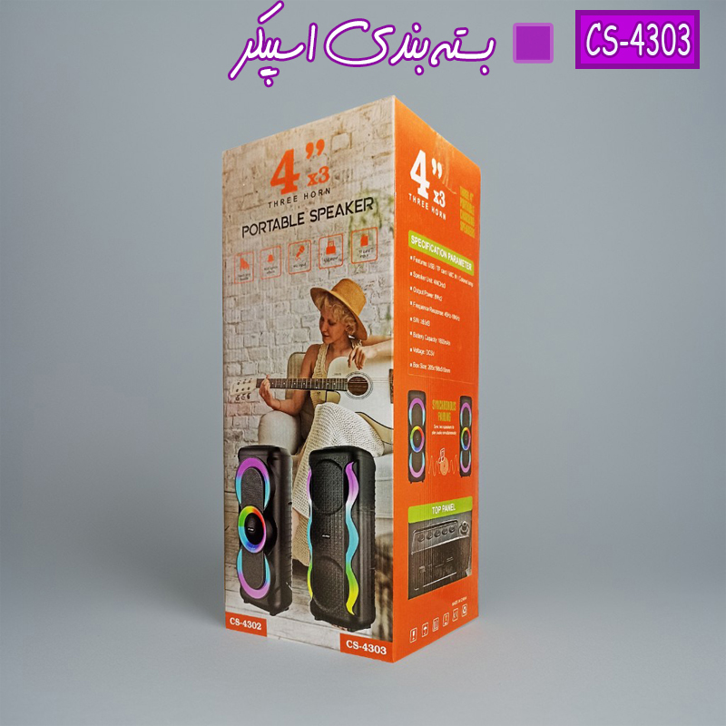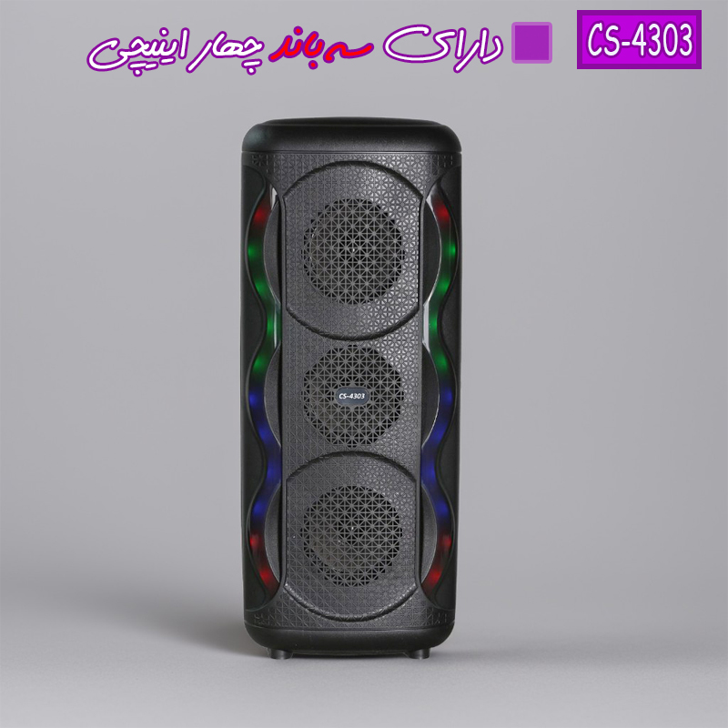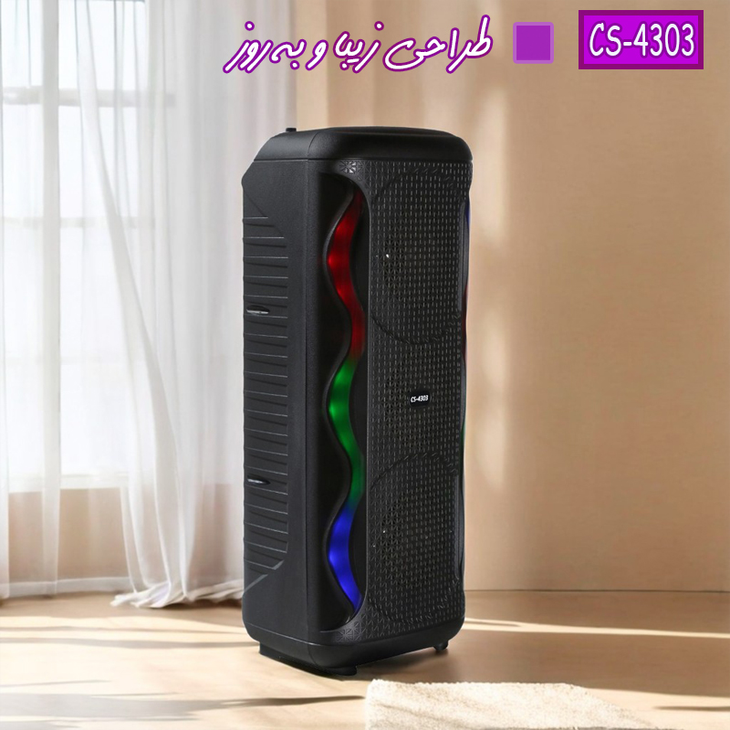اسپیکر بلوتوثی مدل CS-4303 با طراحی زیبا و عملکرد حرفهای، انتخابی ایدهآل برای علاقهمندان به موسیقی در هر مکان و شرایطی است. این اسپیکر با صدای پرتوان و کیفیت استثنایی، همراهی مناسب برای سفر، مهمانی و استفاده روزمره میباشد.