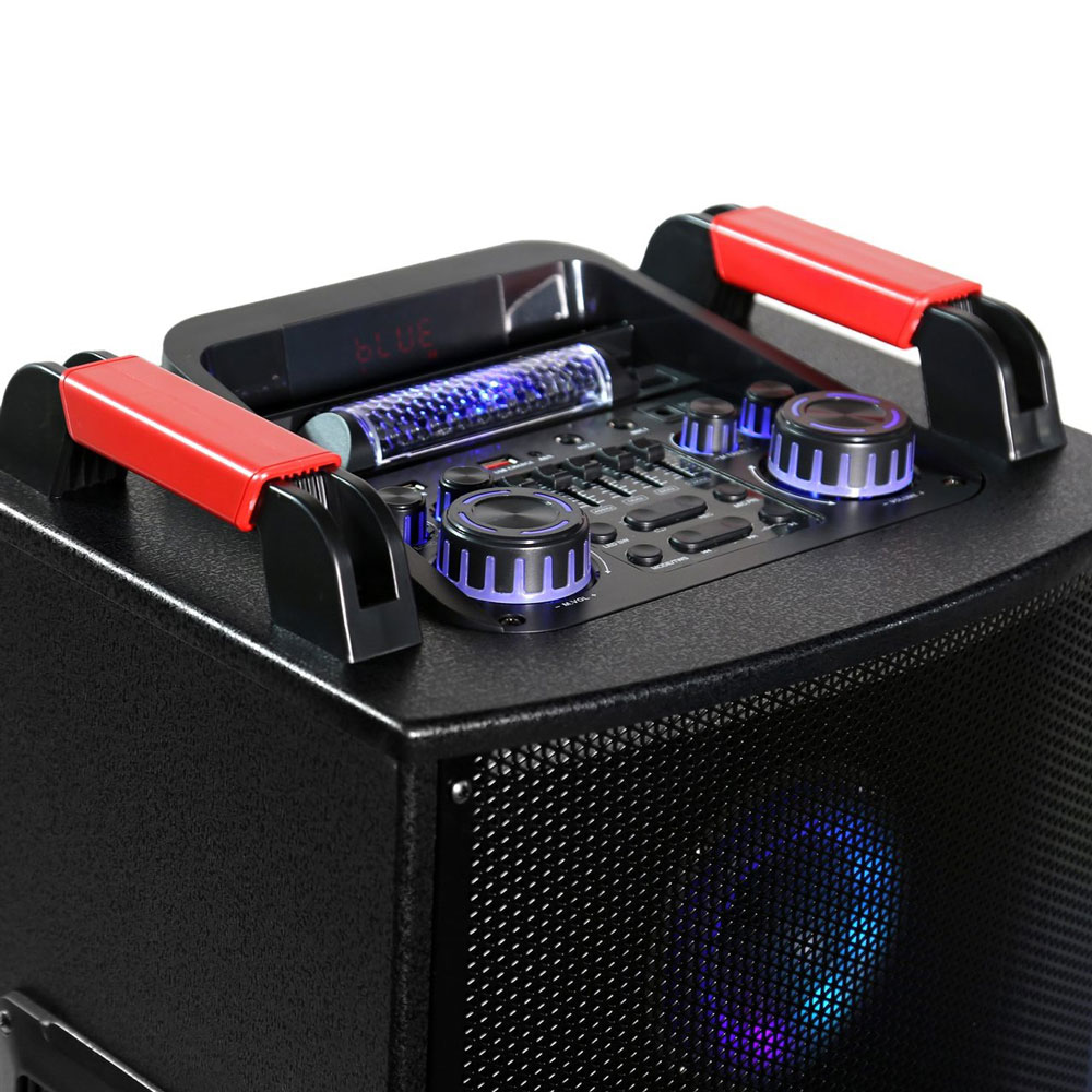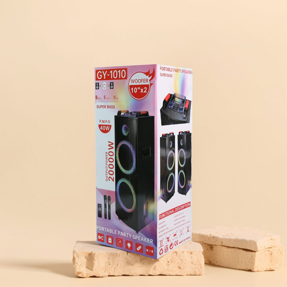 چراغهای LED رنگی در جلوی اسپیکر، جلوهای جذاب به محیط میبخشند و حس شادی و هیجان را افزایش میدهند، بهخصوص در مهمانیها و جمعهای دوستانه. طراحی دستهدار و ابعاد مناسب حملونقل را بسیار آسان کرده است. در مجموع، اسپیکر بلوتوثی GY‑1010 انتخابی هوشمندانه برای کسانی است که به دنبال اسپیکری خوشساخت، با امکانات کامل و قیمت مقرونبهصرفه هستند.