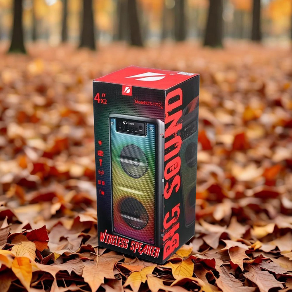 اسپیکر بلوتوثی KTS‑1712 با رادیو FM و قابلیت کارائوکه | خرید اسپیکر قابل حمل ارزان