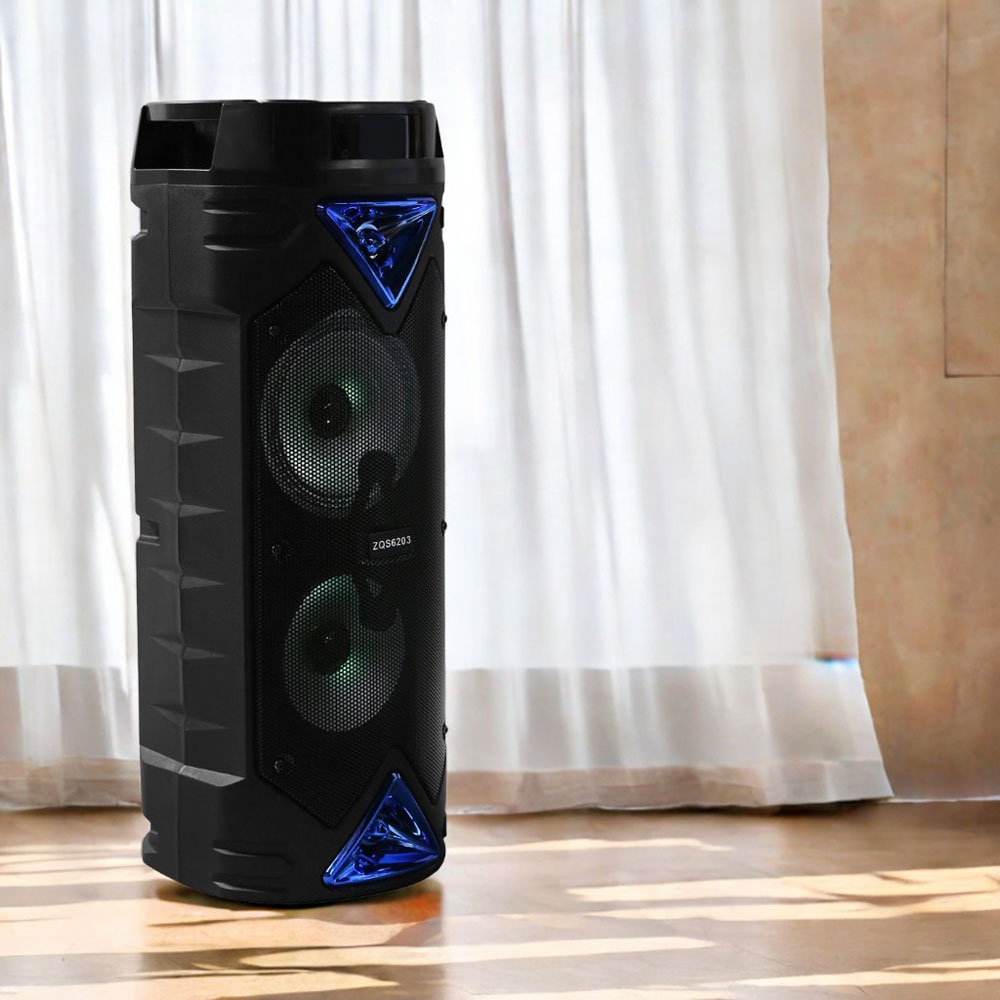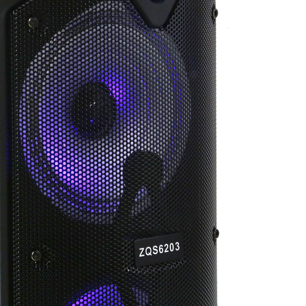 چراغهای LED جلوی اسپیکر موقع پخش موسیقی با ریتم آهنگ هماهنگ میشن و یه حس خاص و هیجانانگیز به فضا میدن. در مجموع، خرید اسپیکر بلوتوثی ZQS‑6203 یه انتخاب عالی برای کساییه که دنبال کیفیت صدا، ظاهر جذاب و امکانات کامل در کنار قیمت مناسب هستن. با این اسپیکر، موسیقی همیشه همراهته! 🎵