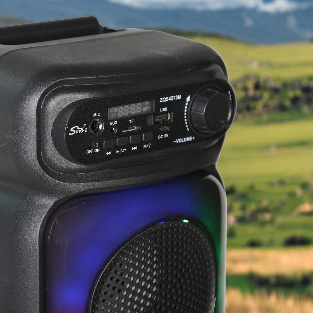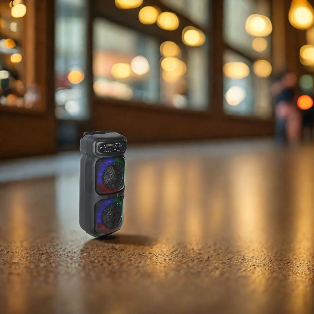 از ویژگیهای برجسته این اسپیکر، نورپردازی LED زیبا و هماهنگ با ریتم موسیقی است که جلوهای جذاب به هر محفل میبخشد. این محصول با بدنهای مقاوم و طراحی ارگونومیک، برای استفاده روزمره و بیرون از خانه ایدهآل است.